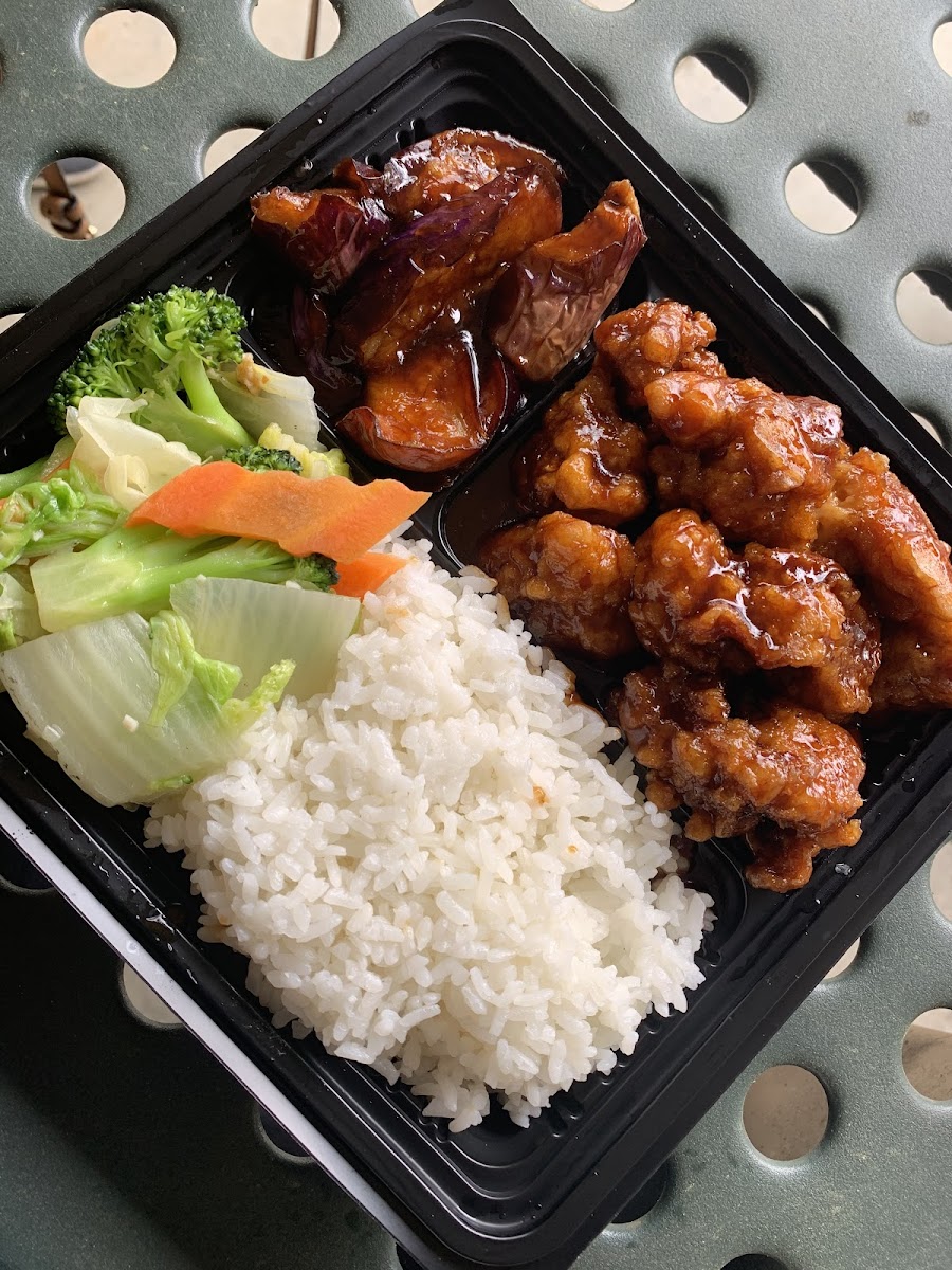 Food is decent - not as flavorful as I would have expected, but they at least give you a good portion for what you get. I got the Kung Pao chicken combo and the orange chicken combo. The combo comes with eggplant which is DELICIOUS - sweet and savory- and was probably the best thing on the plate. The orange chicken wasn’t the syrupy sweet kind you might get from another Chinese food restaurant. It tastes like they use actual orange essence to flavor the chicken - it’s subtle and not overpowering. There was a wide variety of things on the menu to try, so I will likely be going back to try something different. Would recommend if you’re in the area. Cant sit inside but there are a couple tables outside to sit if you want to say. I would recommend ordering ahead because it took a long time for the food to cook.